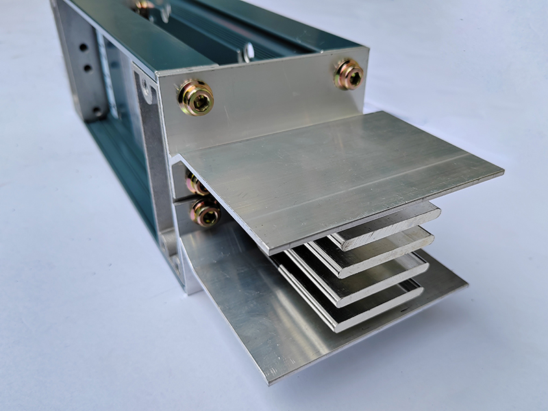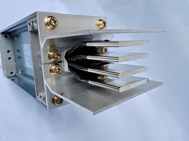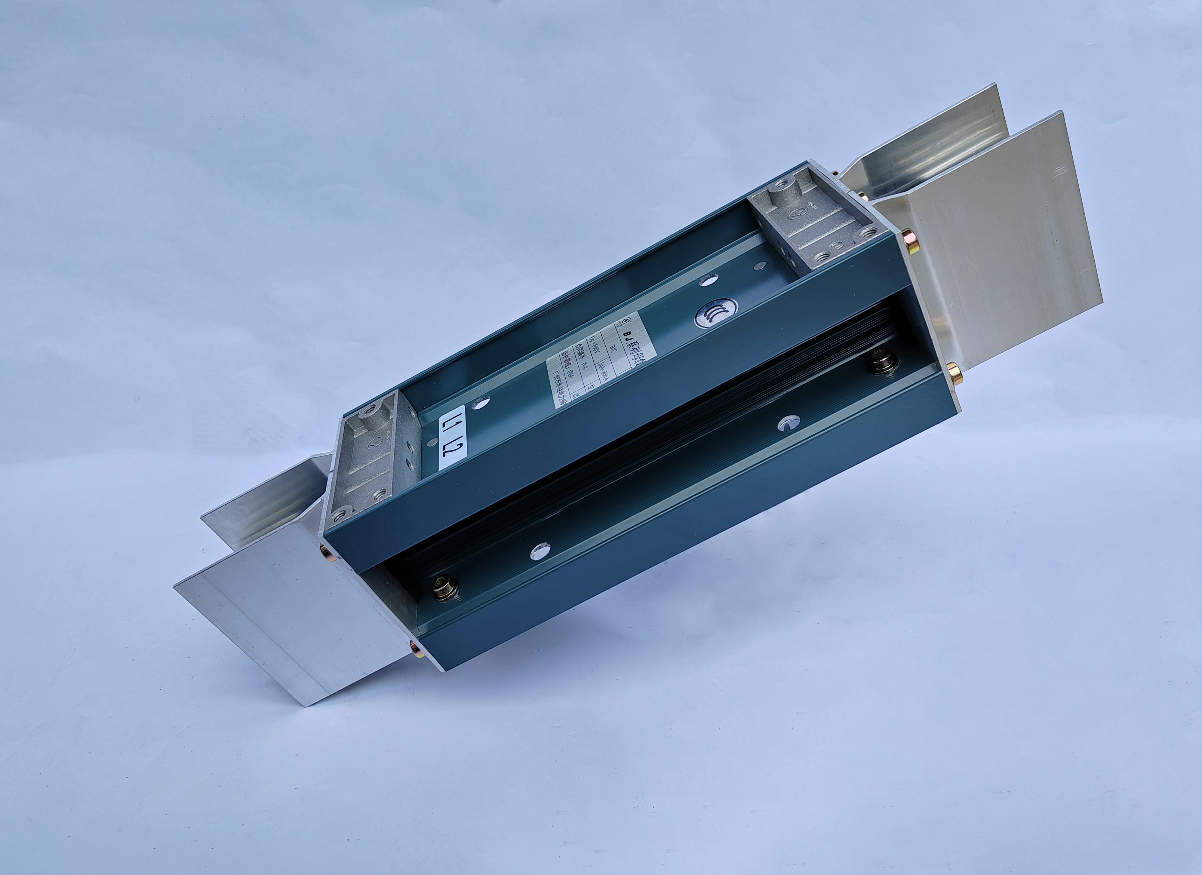 母線槽導(dǎo)體采用TMY系列的T1銅排,每條相排表面分別包覆兩層聚脂薄膜作為絕緣層,端部留有至少45mm裸露面供安裝連接器,銅排按相序放入鋁型材外殼,通過(guò)蓋板和側(cè)板固定導(dǎo)體。BJC系列母線槽分為15種,范圍在250A-6300A。
